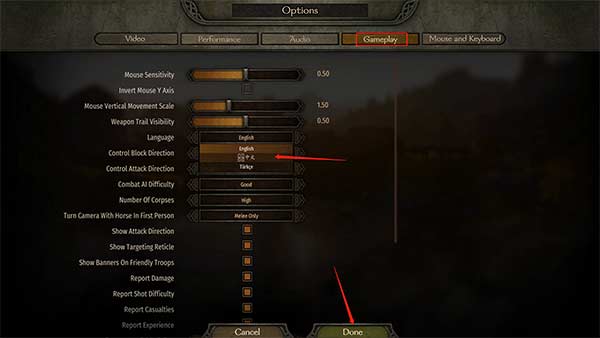 9、在“Gameplay”标签下选择“简体中文”并保存设置;