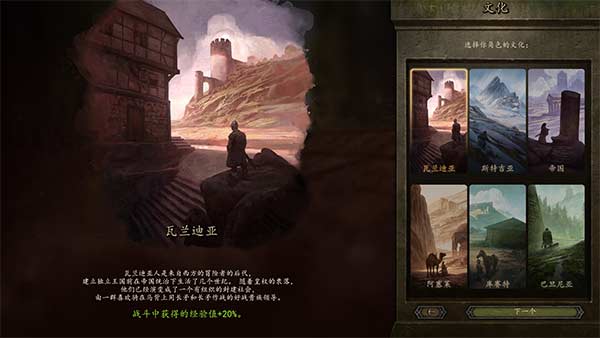 13、玩家可自由选择瓦兰蒂亚、帝国、巴丹尼亚、斯特吉亚等不同文化角色;