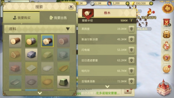 建造贸易建筑并拥有商队驿站后,玩家可以在世界地图上搜索并购买所需资源。这种方式比城市生产更快,但需要支付相应的银克朗。