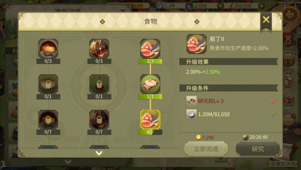 科技研究需要银克朗和相应的科技研究院等级。随着游戏进程的深入,如果想获得更高级的加成效果,就需要优先升级研究院。
