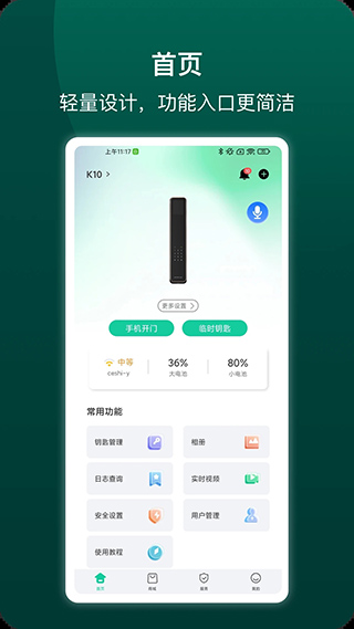 而德施曼智能锁app的优势在于其便捷的管理功能,您不仅可以通过app一键开门,还可以更换门锁密码、添加或更改人脸识别用户、分享钥匙、管理钥匙等。若门锁出现任何问题,app内的一键报修功能还能快速为您联系售后服务,让您的生活更加便捷舒适。欢迎下载体验!