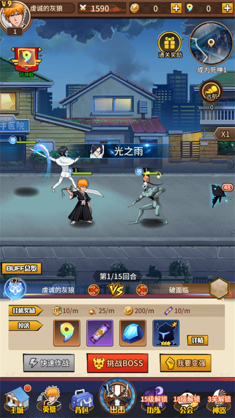 超神觉醒手游官方版是一款根据知名日本动漫《死神》改编的ARPG手游,游戏中,玩家将化身为一名死神,守护自己的城市,通过连续击败敌人来守护和平。在游戏中,玩家需通过完成副本、任务和挑战来积累经验和装备,以便在未来的战斗中更加轻松地击败敌人。游戏提供多样化的英雄选择,包括但不限于朽木露琪亚、日番谷冬狮郎、更木剑八等,每位英雄都拥有独特的技能和特性,玩家可根据个人喜好进行选择和冒险。