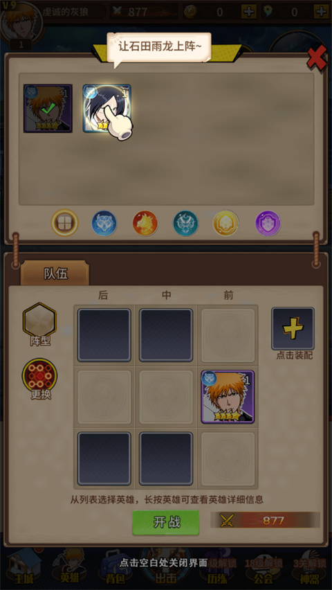3、在挑战BOSS前,玩家可以点击英雄头像安排阵容;