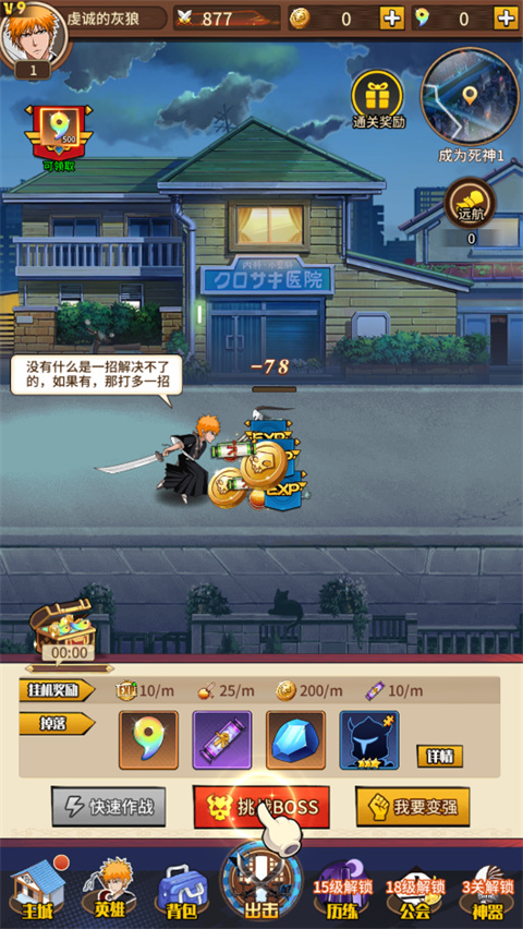 2、除了攻击小怪外,还可挑战BOSS快速提升等级;