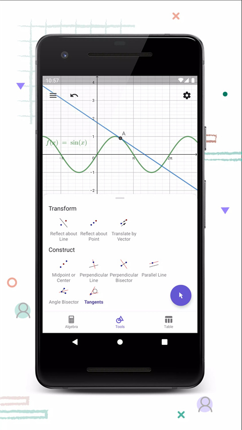 geogebra手机版是一款非常方便的数学学习神器,集成了绘图、几何、数据、分析、求解方程等多项实用功能,能够帮助用户在多环境下完成对于数学图形的操作。该应用通过非常直观的动态绘图效果,能够实时演绎每个函数图形的变化过程,通过添加不同的参数来实现图像呈现,使得学生们能够更好地明白数学知识的原理,大大加强了他们的学习兴趣!