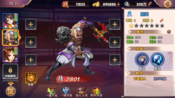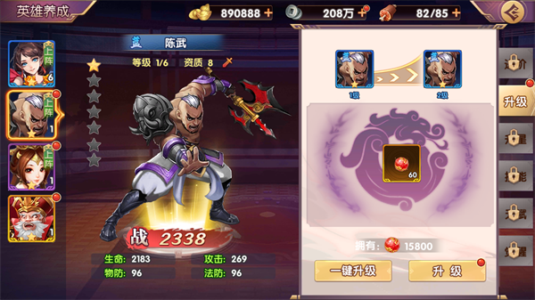 通过进阶,可以解锁强大的武将技能,同时获得显著的属性提升。