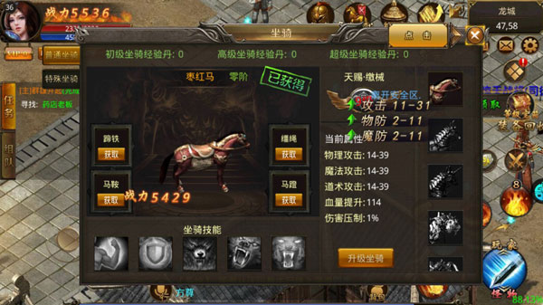 坐骑不仅提升移动速度,更随着不断强化提升玩家的战力。