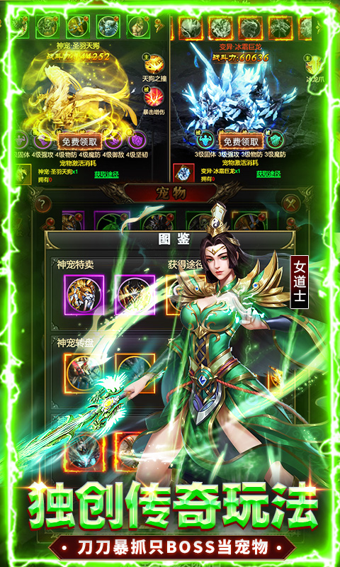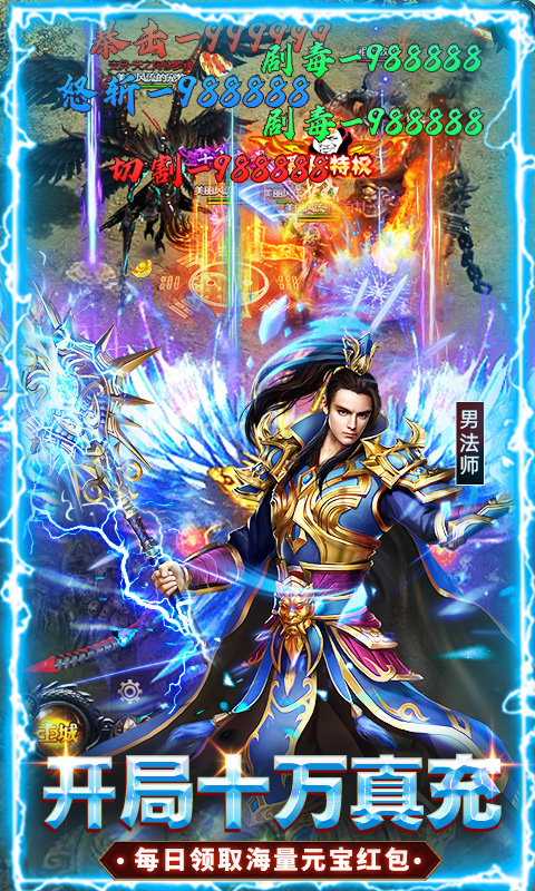 3、全新的万劫套装热力登场,增强玩家的攻防能力和内力值,在PK战中让你所向披靡。击败高级BOSS有机会获得万劫碎片,收集齐全后可在比奇城NPC合成万劫装备。