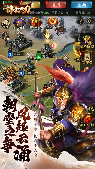 在锦衣寒刀手游0.1折版中,玩家将体验到刺激的贪吃作战玩法,并有机会在一个丰富多彩的交易市场上进行交易。此外,游戏中设有近200位历史名将等你去结识,你可以带领他们抵御敌人,轻松完成各种任务、副本和活动,从而获得声望和装备等资源。此外为了帮助玩家更好地进行战斗,锦衣寒刀手游0.1折版还提供了各种不同属性和技能的卡牌,玩家可以根据自己的喜好和战术需求进行搭配。每张卡牌都有独特的技能和特点,玩家需要善于利用它们的优势来应对不同的战斗情况。感兴趣的小伙伴赶快下载游玩吧