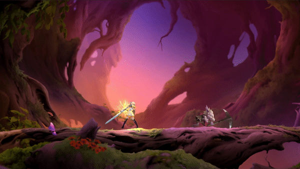 攻击速度极快,但单次伤害较低。使用短剑时,不操作摇杆并点击翻滚可以释放瞬闪,瞬闪能在极短时间内格挡敌人攻击,格挡成功后会自动前进并释放一次高伤害斩击。