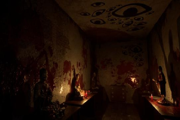 2、男主打开门,进入房间,见到桌子上的八卦图,无论点哪里似乎都无效。几轮操作后,门自动打开,红衣女子再次出现,这时你只需躲进房间里的衣柜,等待安全。当一切平静后,走出门来,你会发现红衣女子在外面巡视。只需避开她的视线,在道路尽头找到一个坑,跳下去,你会发现一个儿童画。房间外面突然出现了摩天轮。你可以沿着墙壁到摩天轮的轨道上移动,也可以通过摩天轮平台转移到另一个轨道。