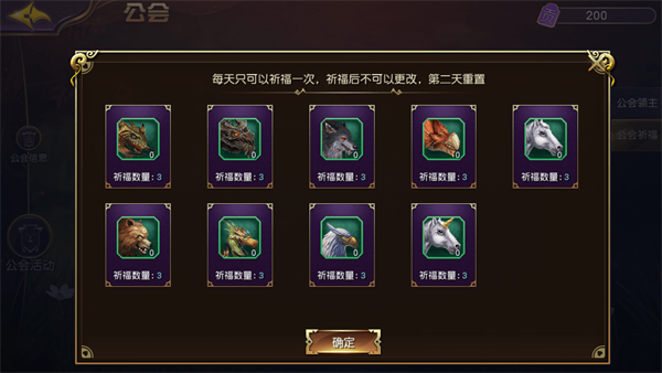 公会祈愿:公会祈愿可用于进阶坐骑。