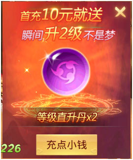 到了58级,你还会得到两颗等级直升丹,让你从58级直接升至60级。哦,对了,60级开放了仙侣功能。只要10块钱就能达到人生巅峰,赢取美满人生,想想都令人激动。