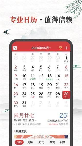 1、日历--首先下载安装本软件,打开后在首页下方切换至日历栏,即可查看当月日历;