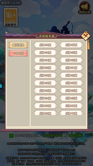 1、选择区服:游戏开始时,玩家需要选择合适的区服。