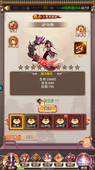 激活战神,提升战斗力。