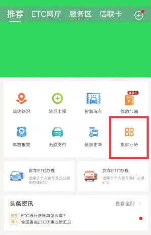 1、在首页选择【更多业务】进入更多选项。