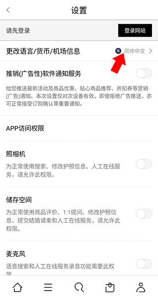 1、下载并启动乐天免税店app官方版,点击右下角的人形图标,进入个人设置页面