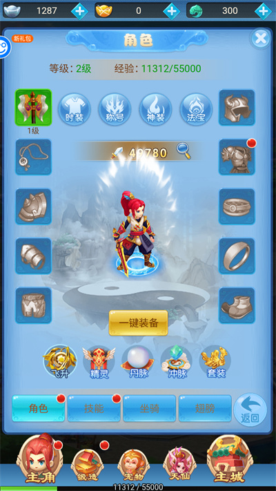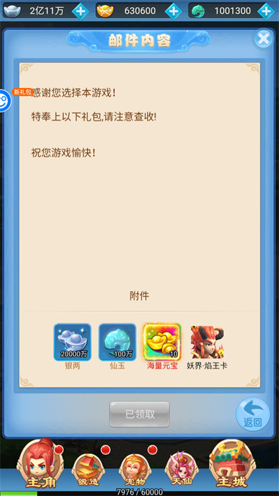 2、勇闯女儿国手游官方版创建角色即赠送海量仙玉和元宝。