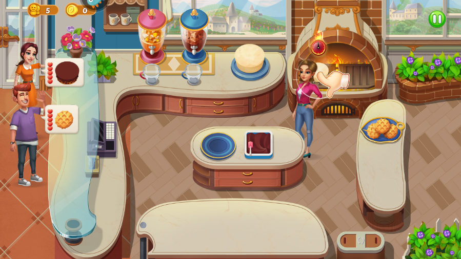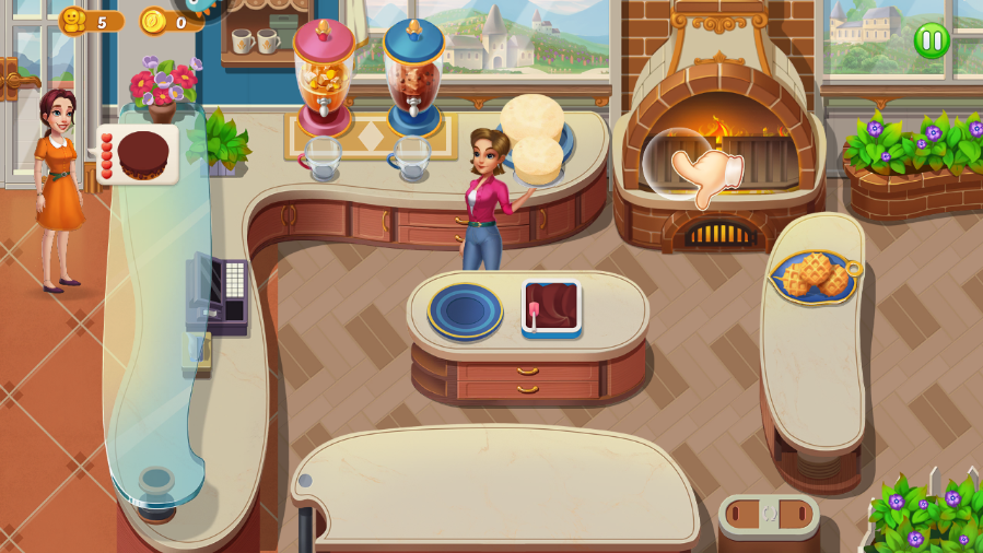 7、然后点击桌上的可可粉,同时准备其他顾客的饼干;