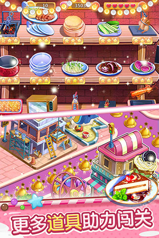 1、充满温馨的卡通风格画面。2、有趣的美食制作与经营玩法。