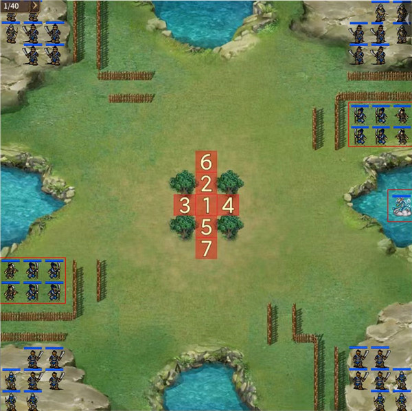 每三轮会有两对力士和伐木工出现在对角线位置,应在2轮内尽快清除。出现前,将武将提前移动至相应方向。