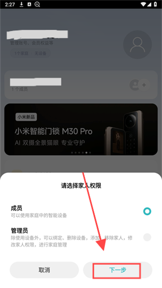 4、设置家人备注,父亲、母亲、女主人、男主人等,点击下一步