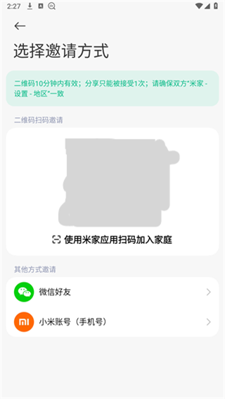5、通过扫描二维码、邀请微信好友、小米账号等方式进行邀请,即可完成操作