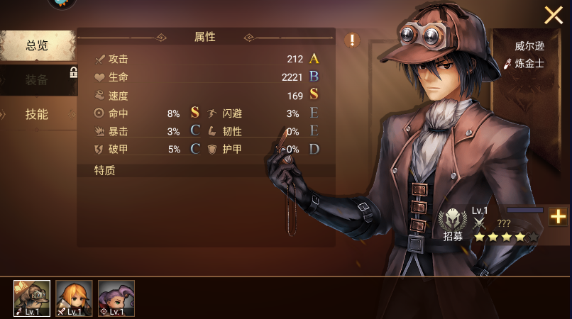 专属特质:战斗中死亡后能原地复活一次,复活后生命值极低