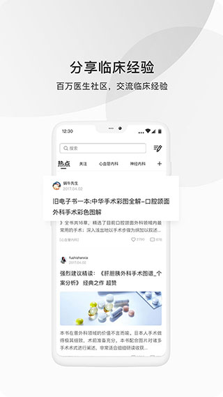 综合诊疗知识库:基于循证医学,结合国内医生实际需求,构建疾病核心知识库,提供全面诊疗指导。圈子话题:与医学同道交流临床经验,分享医学旅程。