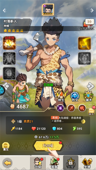3、玩家可以通过点击角色进行培养升级、转生,以及配备符文和提升骑术;