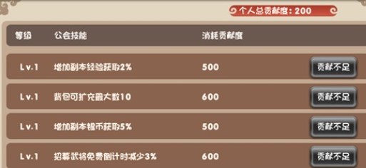 1、20级起玩家可加入公会,每日可为公会升级做出贡献,贡献度可用于学习公会技能(如减少强化装备的费用,增加背包格子上限等),或在公会商店购买道具。