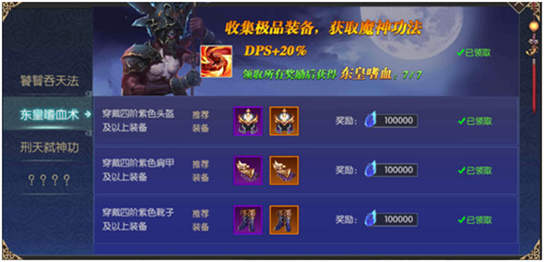二、【东皇嗜血术】:领取【饕餮吞天法】技能后显示。