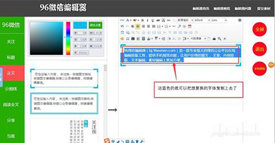 5、素材编辑或选择完成后,可使用鼠标选择编辑内容,利用Ctrl+C复制,然后粘贴至微信公众平台素材编辑框内完成发布。