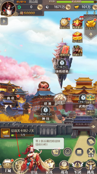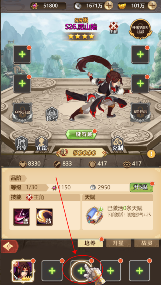 5、在角色界面中点击“+”号位置,准备布置新招募的将领
