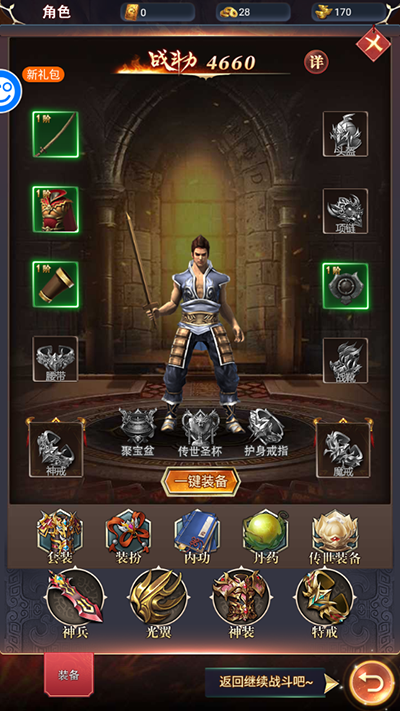 6、达到第二关boss解锁佣兵,达到特定等级解锁武神、神兽