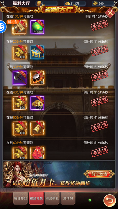 8、领取小人物快跑手游破解版中的各类福利,如每日惊喜、任务奖励、在线奖励、新手大礼包等
