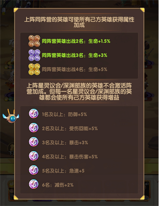 4、同阵容英雄出场加成:英雄数量决定加成效果的大小。
