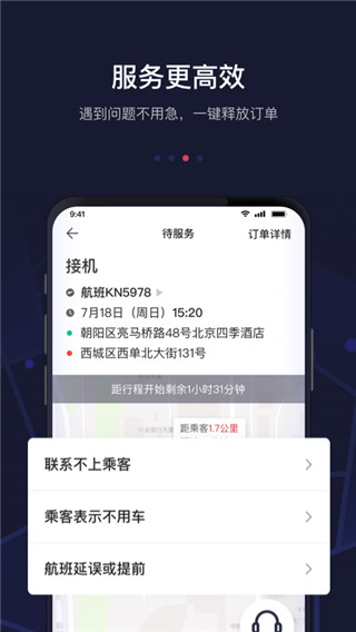 3、高效接驾:即时通讯技术准确传达乘客位置,确保快速精确地完成接驾,提升乘客满意度。