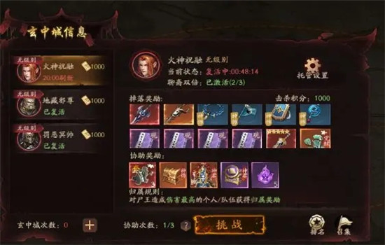 藏经法会 每周一、三、五、日19:30开启。吐纳行功,找等级和自己相差越大的帮派成员传功,获得的经验越多哦! 混沌鬼都 每天19:45-23:00开放,由帮主/副帮主或者帮派成员投票开启。开启后需要限时内杀死邪祟,击杀越快星级越高,最高三星。邪祟中途会召唤小怪来保护自己,只有清完小怪才能继续击杀。挑战成功后,个人排行奖励会自动发放至背包。道友们别着急退出地图,接下来就是参与击杀邪祟的道友们比拼手气的时候啦!投掷骰子点数最高可获得额外装备奖励!!! 恶鬼蚀天 每周二、四、六19:30开启。活动场景内有4位NPC共同守护结阵,恶鬼想要侵蚀帮派,必须要打破此阵。每个NPC都为道友带来额外的恶鬼经验加成,若NPC死亡,则失去对应的经验加成。道友们的任务就是守护NPC,击杀恶鬼们。击杀恶鬼可获得大量经验,每波结束可获得银锭、帮派建设度奖励。鼓舞(5次铜板+5次银锭鼓舞)可以增加全体帮众的20%伤害,还有额外名帖奖励。活动结束后,发放个人奖励,并开启帮派拍卖行。道友们可自行竞拍需要的道具哦! 特权双特权搭配,干活不累!!! 小铃铛偷偷买了尸王助手+至尊特权,非常好用哇!