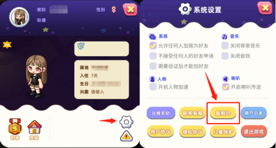 1、查询游戏ID:点击左上角头像,进入系统设置,一键复制ID号。