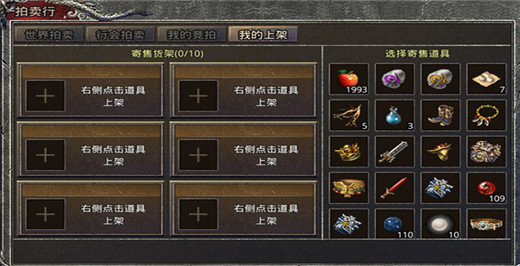 6、游戏内还有独特的拍卖行系统,玩家可以选择自己要寄售的道具进行售卖,也可以购买其他玩家出售的道具。