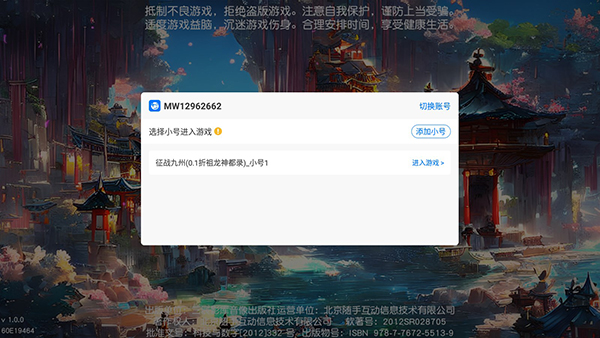 1、首先,在本站下载并安装征战九州0.1折版游戏,之后打开游戏,登录账号;