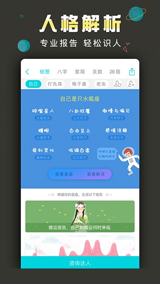 测测app官方版包括生命数字、八字紫微、二十八星宿,并附有详尽解释。