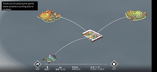 3、建造好船厂和贸易站后,准备食物和船员,开始航行探索。目前游戏中有3个小岛。达到目的地后,可以进行贸易,不同地点有不同的交易物品。