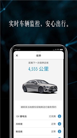1、用户在本站下载Mercedes me奔驰app官方版并绑定车辆,直接通过软件管理您的爱车;