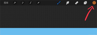 3、点击画布右侧的图层标志(如下方箭头所示);