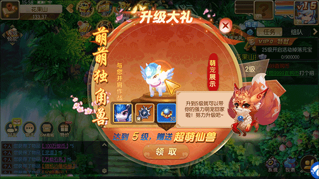 1、启动我的西游0.1折版游戏后,玩家首先需要领取升级奖励,这些奖励将助力玩家更快地成长和进步。