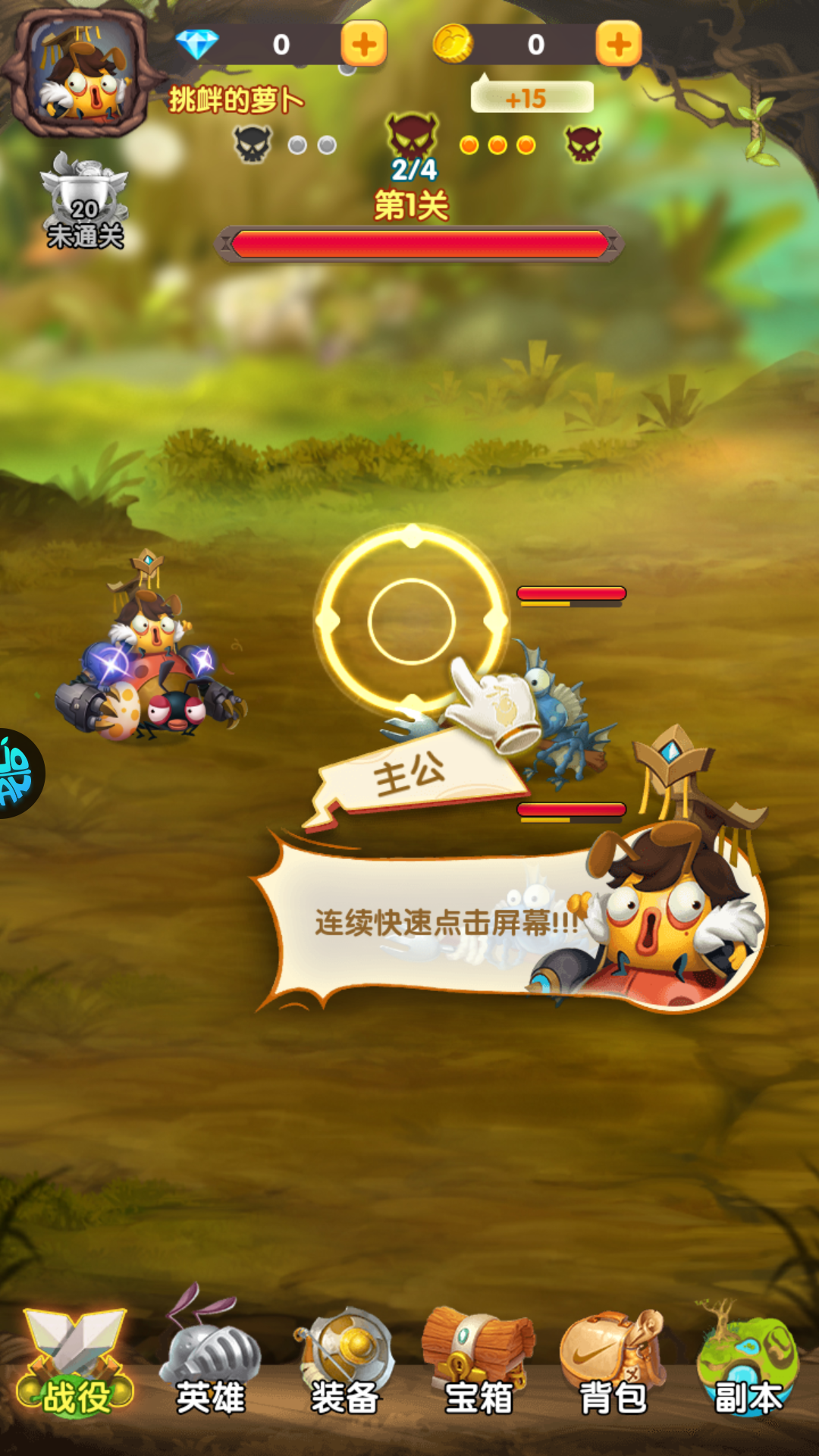 当您开始游戏,迅速地点击屏幕以针对敌人施展攻击。