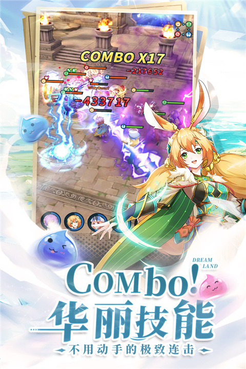 5、【出发!勇者小队集结!】四大阵营中的百名伙伴等待召唤,组建自己的勇者小队,一起守护梦想大陆。